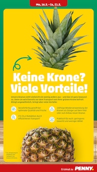 Bei Penny findest du eine vielfältige Auswahl an Ananas Angeboten. Diese Woche, in KW 11, hat ⭐️ Penny ein Ananas Angebot ⭐️ im Prospekt. Der günstigste Preis für Ananas liegt bei 1,49 € auf Seite 6. Der Prospekt "Wer günstig will, muss Penny." ist vom 16.03.2026 bis 22.03.2026 gültig. Finde hier alle Ananas Angebote.