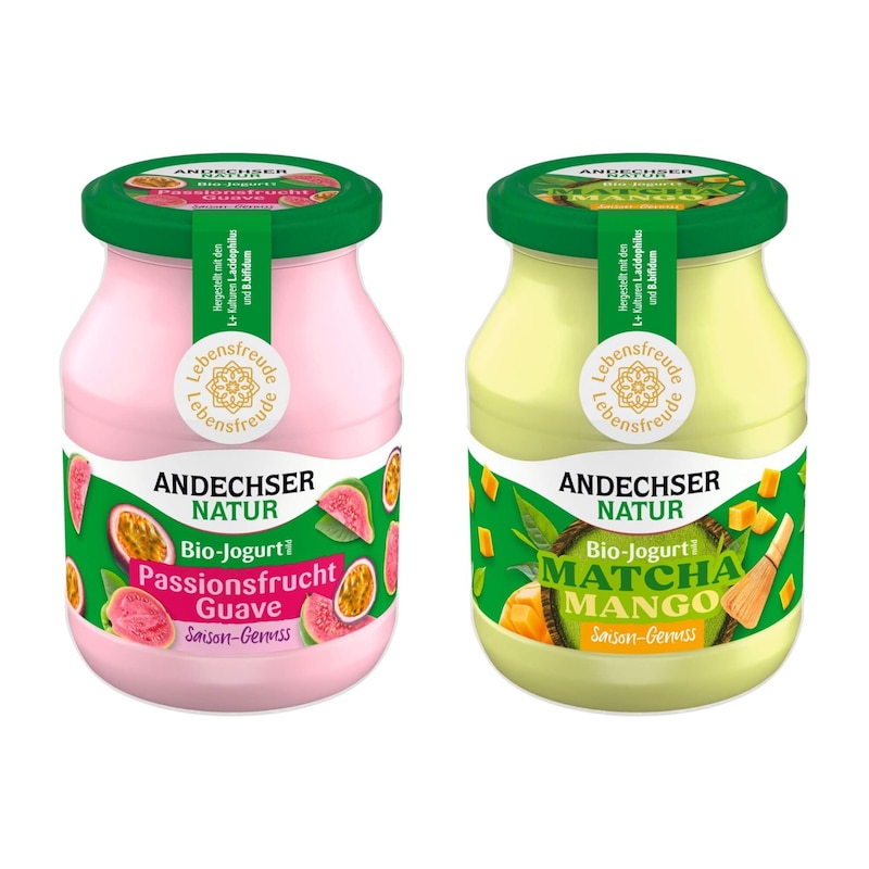 Andechser bringt zwei saisonale Bio-Jogurts ins Kühlregal: Passionsfrucht-Guave und Matcha-Mango setzen auf fruchtige Kombinationen mit feiner Exotik. Nur für kurze Zeit erhältlich.